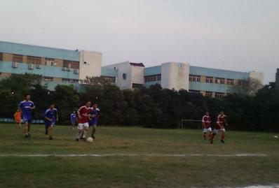 在爽朗的秋風中,帝斯曼公司自成一隊,他們的球員穿著紅色球衣,氣勢蓋人。華南分公司帝斯曼項目部和管理公司組成一隊,穿藍色球衣,也讓人眼前一亮。下午6點鐘,隨著裁判的一聲哨響,比賽正式開始。雙方都展開了猛烈攻勢,上半場以對方的一個進球,率先打破僵局。隨后,我方球員一改先前的被動局面,勇猛進攻,管理公司樊俊鋒經理的一個射門很快把比分扳成平局。