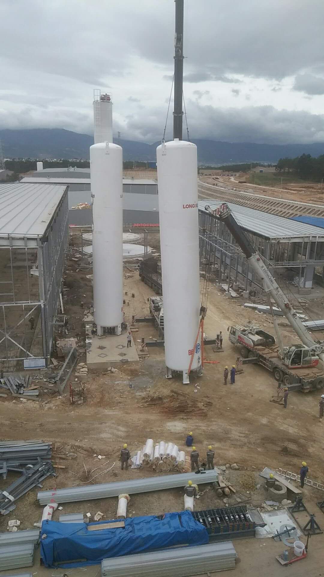 6月28日,華東分公司保山隆基硅業氬氣回收項目部順利吊裝就位1800NM3/H氬氣回收裝置液氬儲槽和冷箱設備,標志著該項目已經啟動安裝施工。