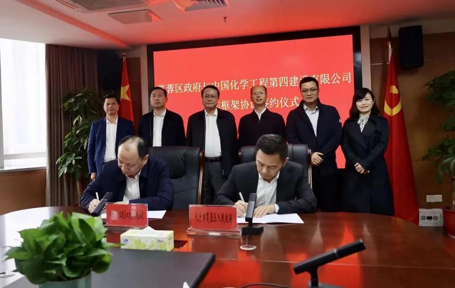 雙方現場簽署《芙蓉區人民政府與中國化學工程第四建設有限公司合作框架協議》。根據協議,雙方將整合各自優勢資源,共同在芙蓉區開展公司長沙總部、國有企業混合所有制改革、片區開發、城市更新及瀏陽河經濟帶建設、重大公共基礎設施建設及提質改造、生態保護和環境治理等領域合作。