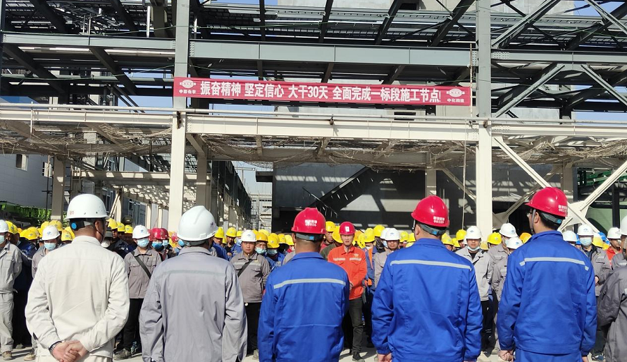4月8日,由西部公司承建的內蒙古新特硅材料有限公司一期10萬噸高純多晶硅項目,在施工現場舉行“大干30天、全面完成一標段施工節點”動員大會新特硅材料有限公司指揮部副總指揮宋高杰、候勇,北京華油鑫業總監甘賢江,項目部全體管理人員及作業人員參加大會。