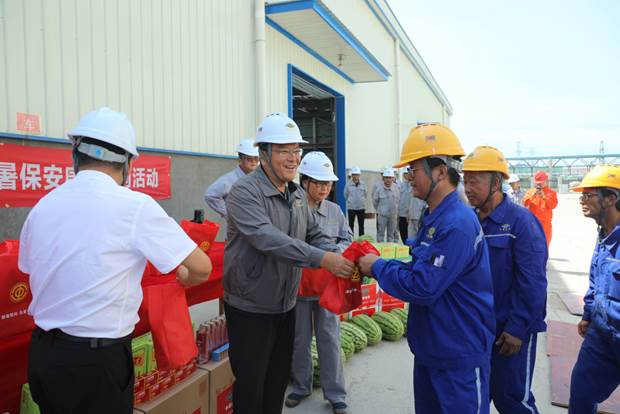 近日,公司黨委副書記、總經(jīng)理趙亮到中化勞務(wù)公司岳化新材料項目開展“夏季送清涼 防暑保安康”慰問活動,叮囑一線職工增強防暑降溫意識,提升自我保護(hù)能力。