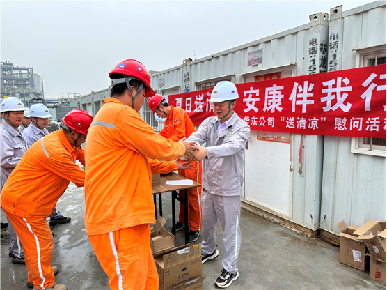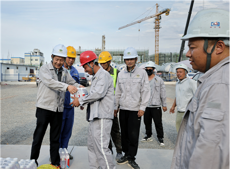 近日,江西公司積極開展“工會(huì)送清涼 防暑保安康”主題活動(dòng),為在山東裕龍石化儲運(yùn)項(xiàng)目、內(nèi)蒙古 PVB 項(xiàng)目等一線高溫環(huán)境下施工的員工送去清涼與慰問,囑咐他們在抓好項(xiàng)目建設(shè)的同時(shí),認(rèn)真做好防暑降溫工作,科學(xué)合理安排工作時(shí)間,避免高溫時(shí)段戶外作業(yè),確保安全、順利、高質(zhì)量完成建設(shè)任務(wù)。