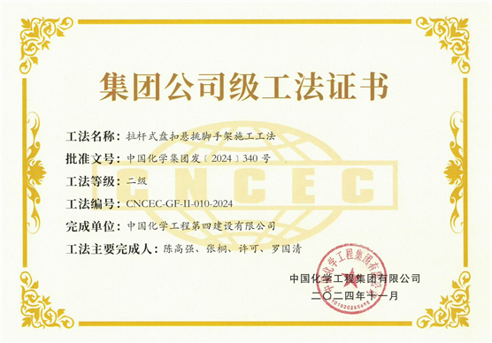 建筑工程公司“拉桿式盤扣懸挑腳手架施工工法”被認(rèn)定為集團(tuán)級工法