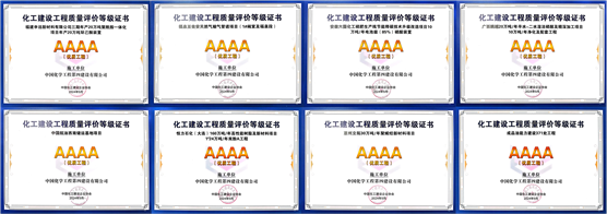 這9個獲獎項(xiàng)目分別是東北公司承建的恒力石化(大連)160萬噸/年高性能樹脂及新材料項(xiàng)目42/26萬噸/年苯酚丙酮工程榮獲5A級優(yōu)質(zhì)精品工程獎;西部公司承建的福建申遠(yuǎn)新材料有限公司三期年產(chǎn)20萬噸聚酰胺一體化項(xiàng)目年產(chǎn)20萬噸環(huán)己酮裝置、福泉至甕安天然氣輸氣管道項(xiàng)目(1#閥室及福泉段)、安徽六國化工磷肥生產(chǎn)線節(jié)能降碳技術(shù)升級改造項(xiàng)目10萬噸/年電池級(85%)磷酸裝置、中國航油西南儲運(yùn)基地項(xiàng)目、廣西鵬越20萬噸/年半水-二水濕法磷酸及精深加工項(xiàng)目10萬噸/年凈化磷酸及配套工程,華東公司承建的恒力石化(大連)160萬噸/年高性能樹脂及新材料項(xiàng)目1#24萬噸/年雙酚A工程,華南公司承建的惠州立拓30萬噸/年聚烯烴新材料項(xiàng)目,中南公司承建的成品油能力建設(shè)371處工程等8個項(xiàng)目獲評4A級優(yōu)質(zhì)工程獎。