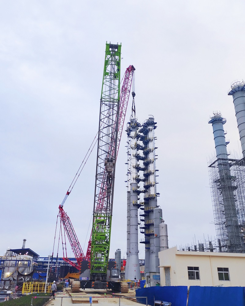 該項(xiàng)目大件設(shè)備共兩臺(tái)(T-602A/B),設(shè)備單重均為150噸。為順利完成此次吊裝任務(wù),項(xiàng)目部采用高強(qiáng)度大規(guī)格鋼絲繩,在確認(rèn)鋼絲繩額定負(fù)載和所有鋼絲繩完好情況下,現(xiàn)場(chǎng)多次進(jìn)行起重低空試運(yùn)行,確保一切正常后方正式起吊。在吊裝中,項(xiàng)目施工人員采用400噸和650噸兩臺(tái)履帶起重機(jī),順利將大件設(shè)備吊裝就位,如期完成施工階段第一個(gè)關(guān)鍵節(jié)點(diǎn),獲得業(yè)主、監(jiān)理的一致贊譽(yù)。(通訊員 孫善義)