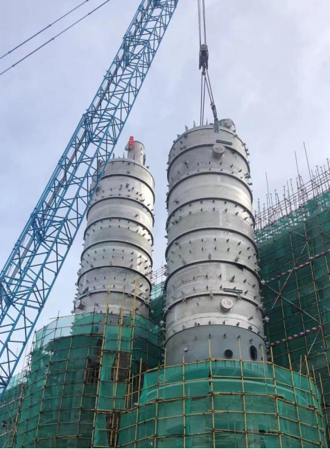 該項目在原盛和化工的地基上重建,施工場地小,超過100噸的設備有12臺。為確保此次吊裝順利完成,項目部克服工期緊、任務重、施工工藝復雜、多家單位交叉施工、設備難以“穿衣戴帽”等多重困難,精心組織、超前策劃、穩步推進,編制吊裝施工方案,加強現場安全防護和施工組織,詳細向作業人員進行施工技術交底,確保此次吊裝安全、優質圓滿完成,受到業主單位的高度贊揚。