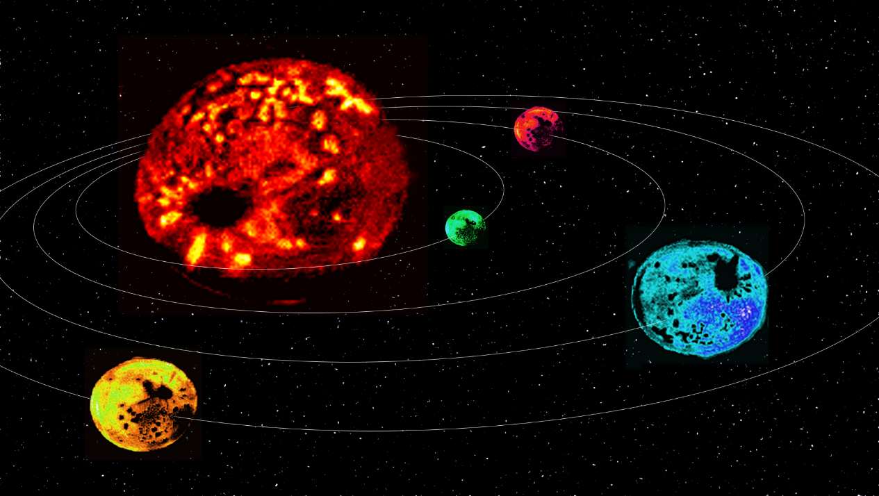 圖片描述:本作品是臍橙采樣圖像在深度學習模型中一系列特征圖的可視化效果。再小的事物似乎都蘊含著一個宇宙,而這些圖像就像一顆顆炙熱璀璨的恒星。希望我們也擁有一顆這樣的恒心(恒星),一顆恒常永久的赤子之心。在特征圖示例圖的基礎上,繪制了一個小星系。