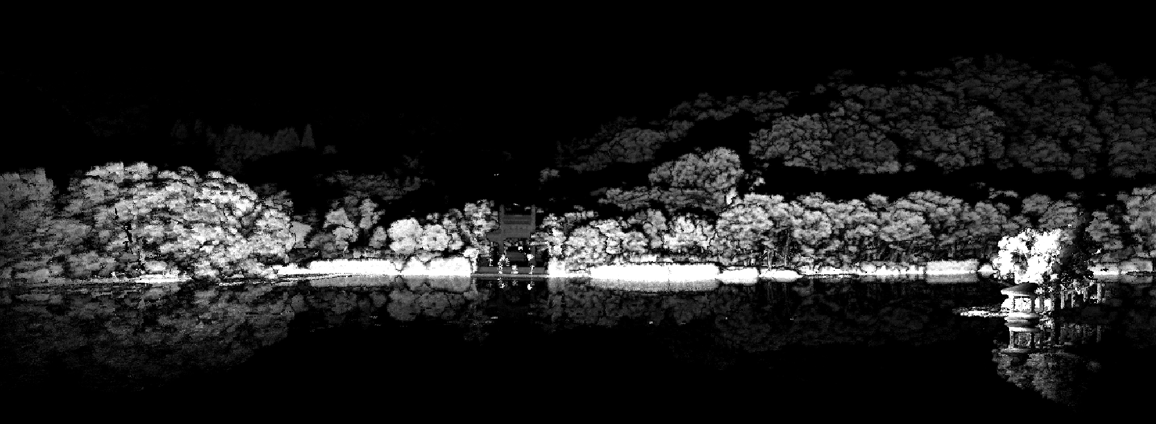 圖片描述:本作品展示的是光電技術(shù)研發(fā)中心項(xiàng)目團(tuán)隊(duì)使用自主知識(shí)產(chǎn)權(quán)的新型激光探測(cè)設(shè)備獲取的高精度三維激光成像圖以及場(chǎng)景照片。(上圖為復(fù)雜環(huán)境精細(xì)三維點(diǎn)云,下圖為實(shí)驗(yàn)場(chǎng)景照片。)與被動(dòng)成像探測(cè)設(shè)備不同,三維激光成像探測(cè)設(shè)備工作受背景和燈光影響小,能夠全天時(shí)工作,湖面、植被和建筑物三維點(diǎn)云清晰可見,同時(shí)可高效探測(cè)識(shí)別物體。