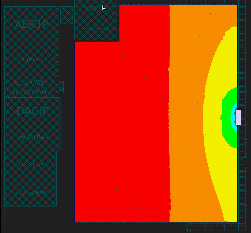 圖片描述:本作品來自于某嵌入式芯片的物理層設計版圖。版圖面積較大的部分為存儲器陣列,如同彩虹一般色彩艷麗,告訴我們在我們的科研路上,只要堅持不懈,最終總會看到彩虹出現的時刻。