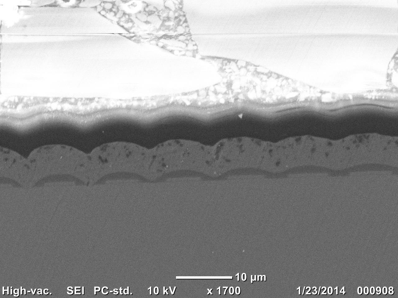圖片描述:本作品為拍晶圓橫截面所形成的圖片,VDMOS器件性能好壞,很大程度上取決于它的微觀結(jié)構(gòu),通過掃描電子顯微鏡看到其橫斷面微觀結(jié)構(gòu),包括垂直幾何結(jié)構(gòu)、雙擴散工藝、多晶硅柵結(jié)構(gòu)、單胞由結(jié)構(gòu)等。