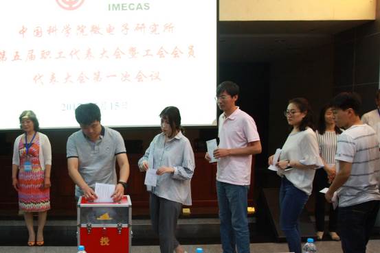 選舉環節,在總監票人趙志剛的主持下,職工代表以無記名投票方式,差額選舉產生了微電子所第五屆職工代表大會常設主席團暨工會委員會、微電子所第五屆工會經費審查委員會。馬強、牛力、劉夢新、李俊峰、武錦、尚長宏、趙麗莉、曹立強、梁曉新、韓鄭生、熊偉11名同志當選為微電子所第五屆職工代表大會常設主席團暨工會委員會委員。楊成樾、張國歡、夏洋當選為微電子所第五屆工會經費審查委員會委員。