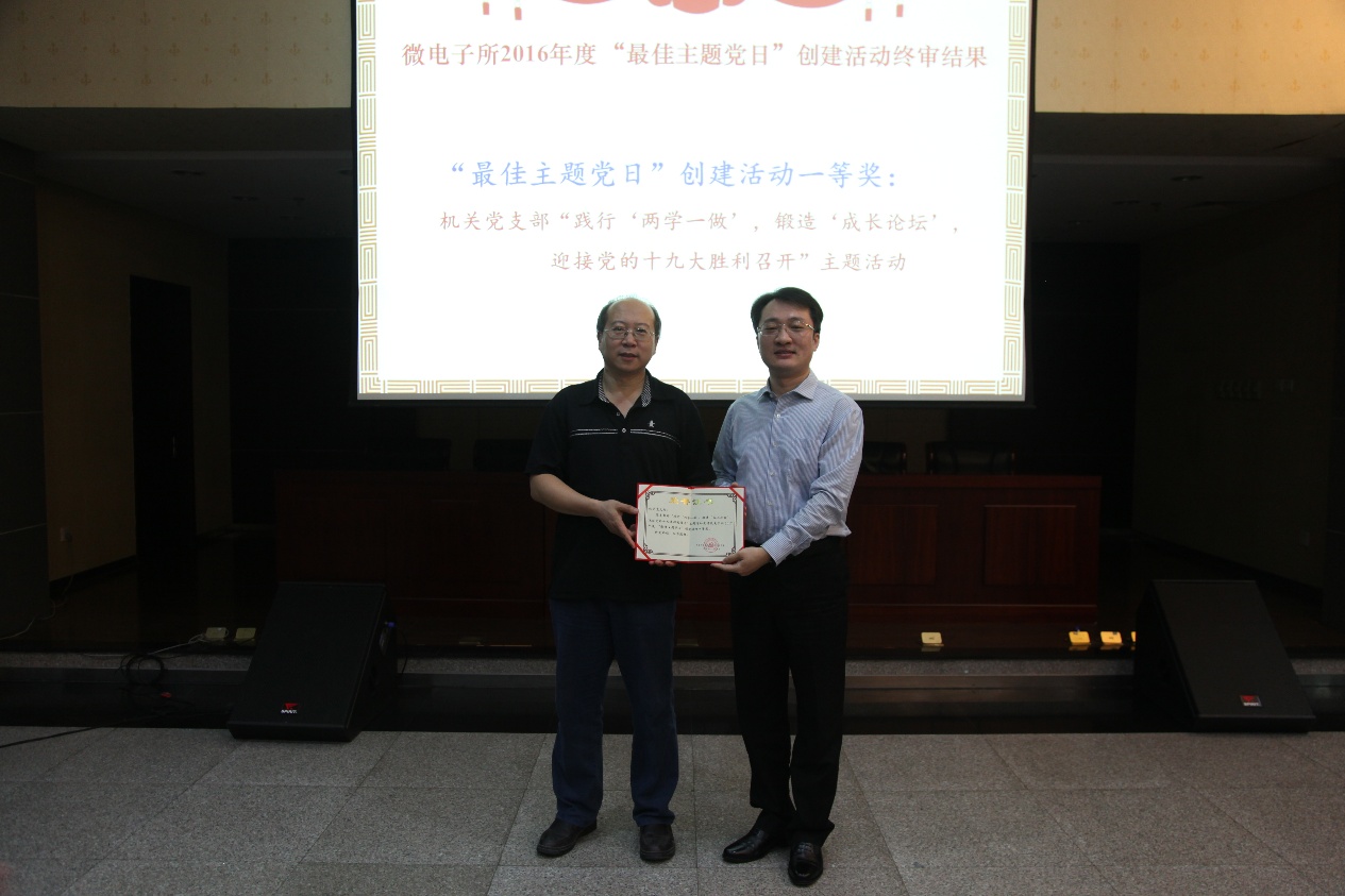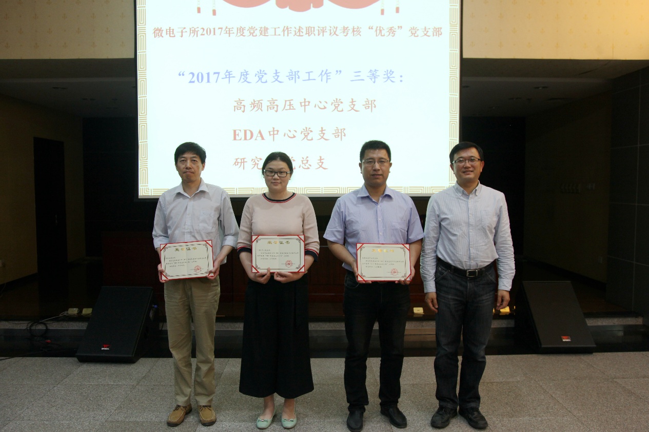 會議通報了微電子所2017年黨建述職評議考核和“最佳主題黨日”創建活動終審結果,對榮獲“2017年度黨支部工作”一、二、三等獎和“最佳主題黨日”創建活動一、二、三等獎的支部進行了表彰。