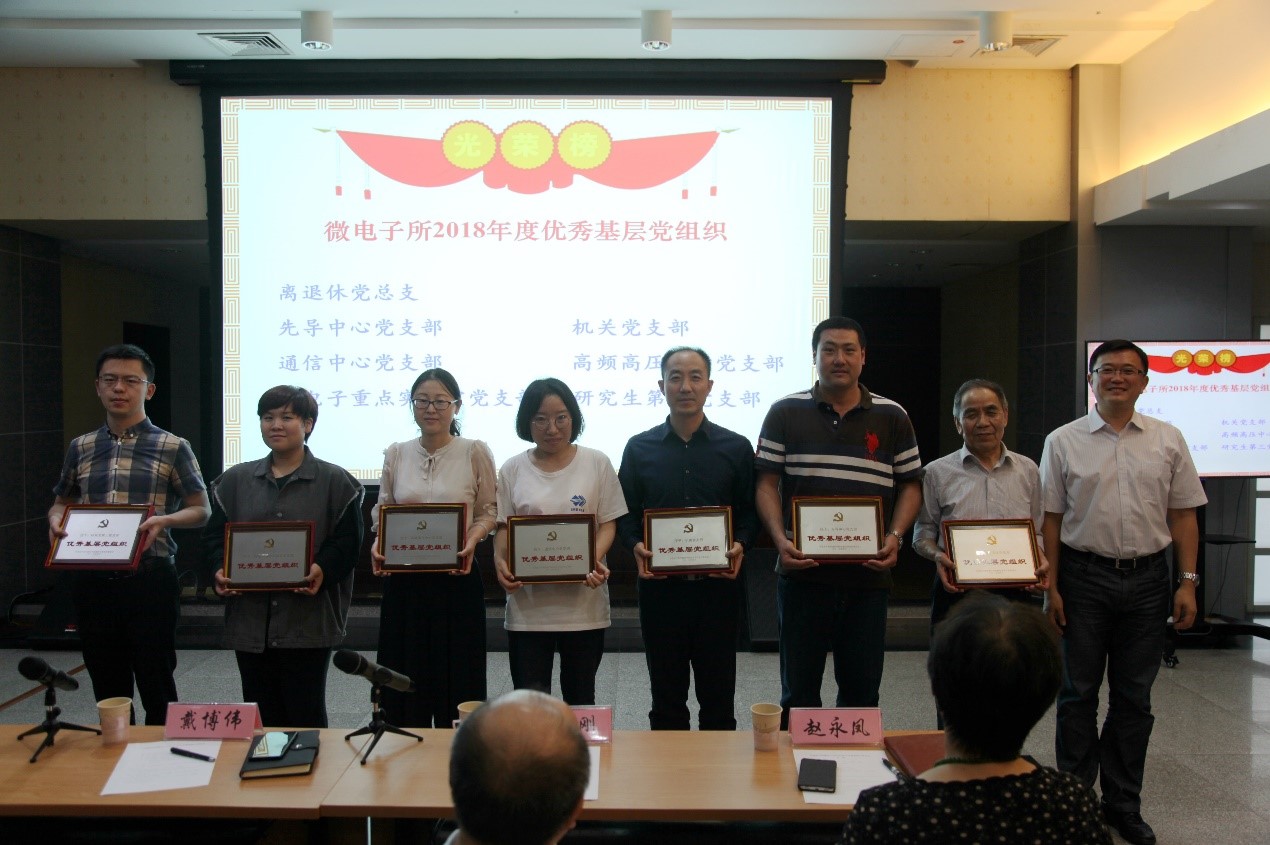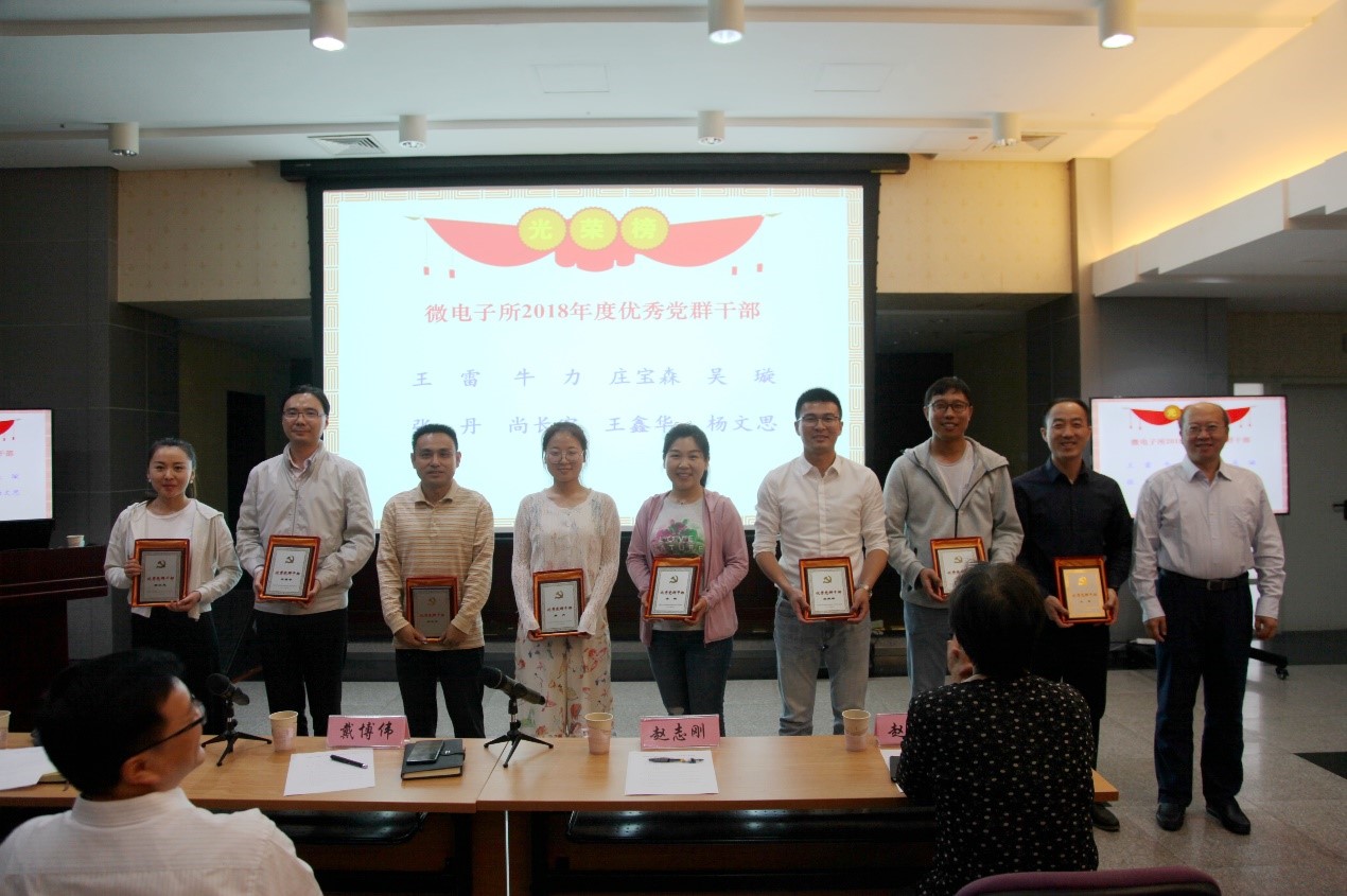 綜合辦公室副主任侯繼強公布了2018年度黨建工作述職評議考核結果。戴博偉、趙志剛分別為獲評優秀黨群干部、先進基層黨組織的集體和個人頒獎。所黨委特別設立了“榮譽黨務工作者”獎項,用以表彰曾經長期擔任黨支部書記(連續兩屆以上)、為研究所黨建工作做出重要貢獻的黨務干部。戴博偉為獲評“榮譽黨務工作者”的同志頒獎。