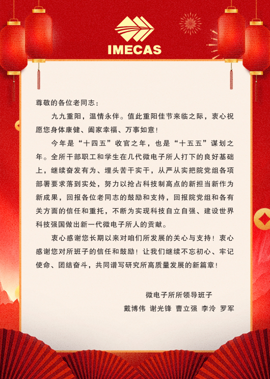 在2025年重陽節(jié)來臨之際,為弘揚(yáng)中華民族尊老敬老的傳統(tǒng)美德,貫徹落實(shí)院離退休干部工作局關(guān)于健全完善“送溫暖,辦實(shí)事”常態(tài)化機(jī)制的有關(guān)精神,中國科學(xué)院微電子研究所精心組織并開展了重陽節(jié)系列敬老活動,向全體離退休老同志送上節(jié)日的問候與誠摯的祝福。