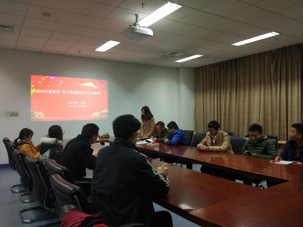 11月20日,研究生第一黨支部開展“新時代、新征程,學習貫徹黨的十九大精神”專題活動。黨支部全體黨員共20余人參加了活動。