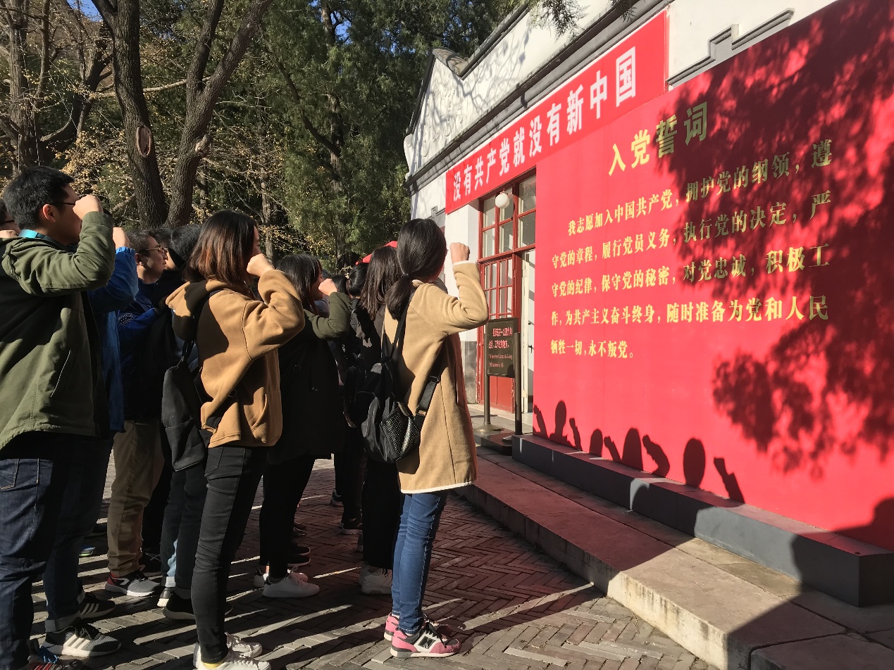 香山雙清別墅坐落于香山公園南麓的半山腰,是乾隆御題的香山二十八景之一。環境幽雅,以其蒼翠的竹林、遮天蔽日的銀杏、挺拔的松柏、古樸的建筑引人前往。這里曾是毛主席戰斗過的地方,曾是中國共產黨領導下的人民解放戰爭走向全國勝利的指揮部,曾發生過扭轉中國命運、決定中國前途的大事,曾是新中國成立的歷史見證地。在十九大勝利召開的背景下,本次活動旨在進一步堅定黨員理想信念,充分激發愛國主義情懷。