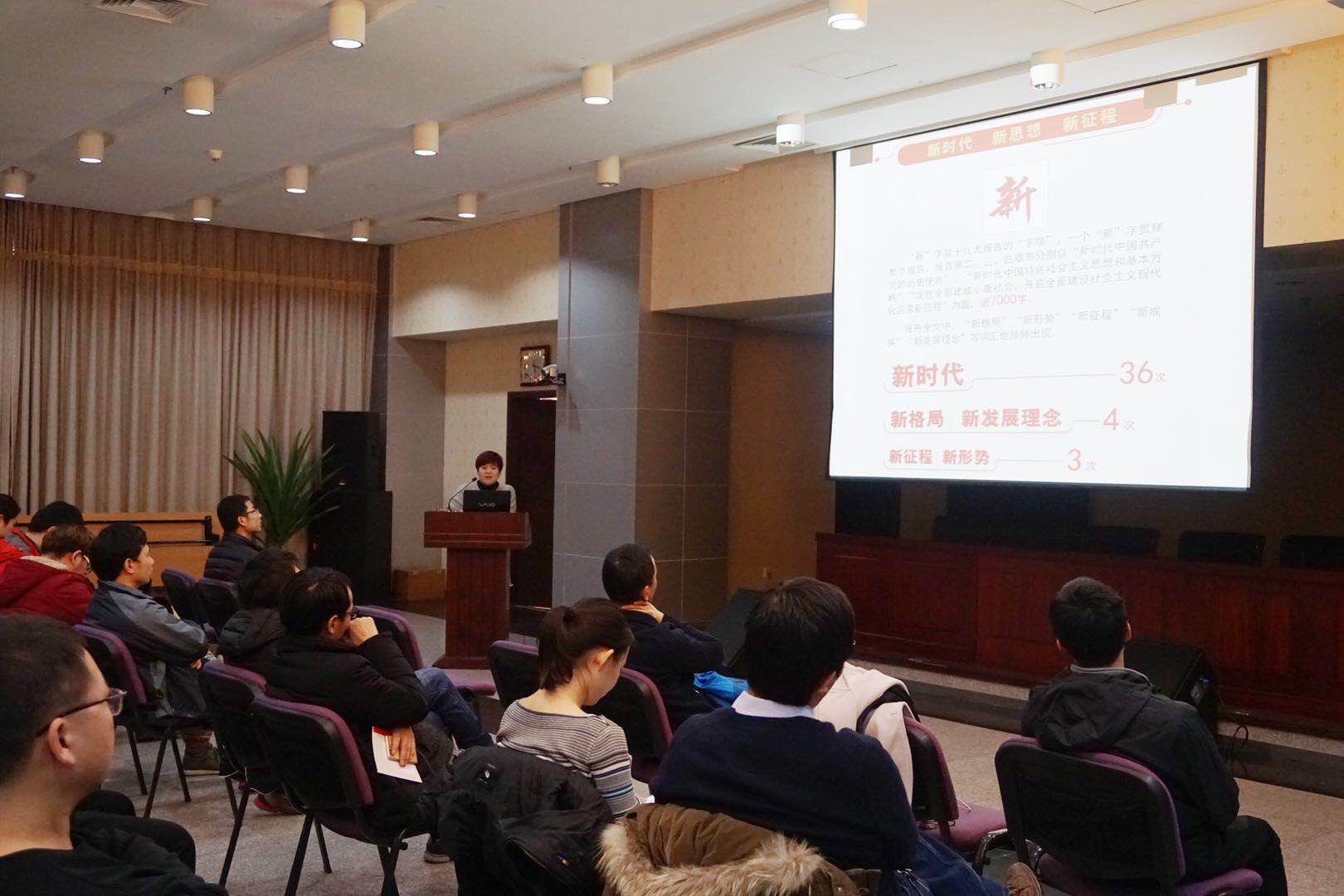 會上,龐婉帶領大家重溫了十九大報告的主要內容和精神。過去的5年,在以習近平同志為核心的黨中央堅強領導下,黨和國家事業取得了歷史性成就、發生了歷史性變革,中國特色社會主義邁進了新時代。十九大報告高舉中國特色社會主義偉大旗幟,主題鮮明、繼往開來、與時俱進,是一個動員全黨全國各族人民決勝全面建成小康社會、奪取新時代中國特色社會主義偉大勝利的政治宣言,是為實現中華民族偉大復興中國夢不懈奮斗的綱領性文獻,給人以信仰的感召、方向的指引、前進的力量。