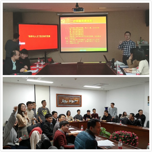 在互動環(huán)節(jié),與會同學隨機分成四個小組進行了“科學與人文”黨史知識競賽。競賽共分必答題、搶答題、風險題三個環(huán)節(jié),題目涉及黨的基本知識、馬克思主義基本原理、科學和人文常識等內(nèi)容。同學們發(fā)揮所長,踴躍參與,密切配合,活動氣氛十分熱烈。