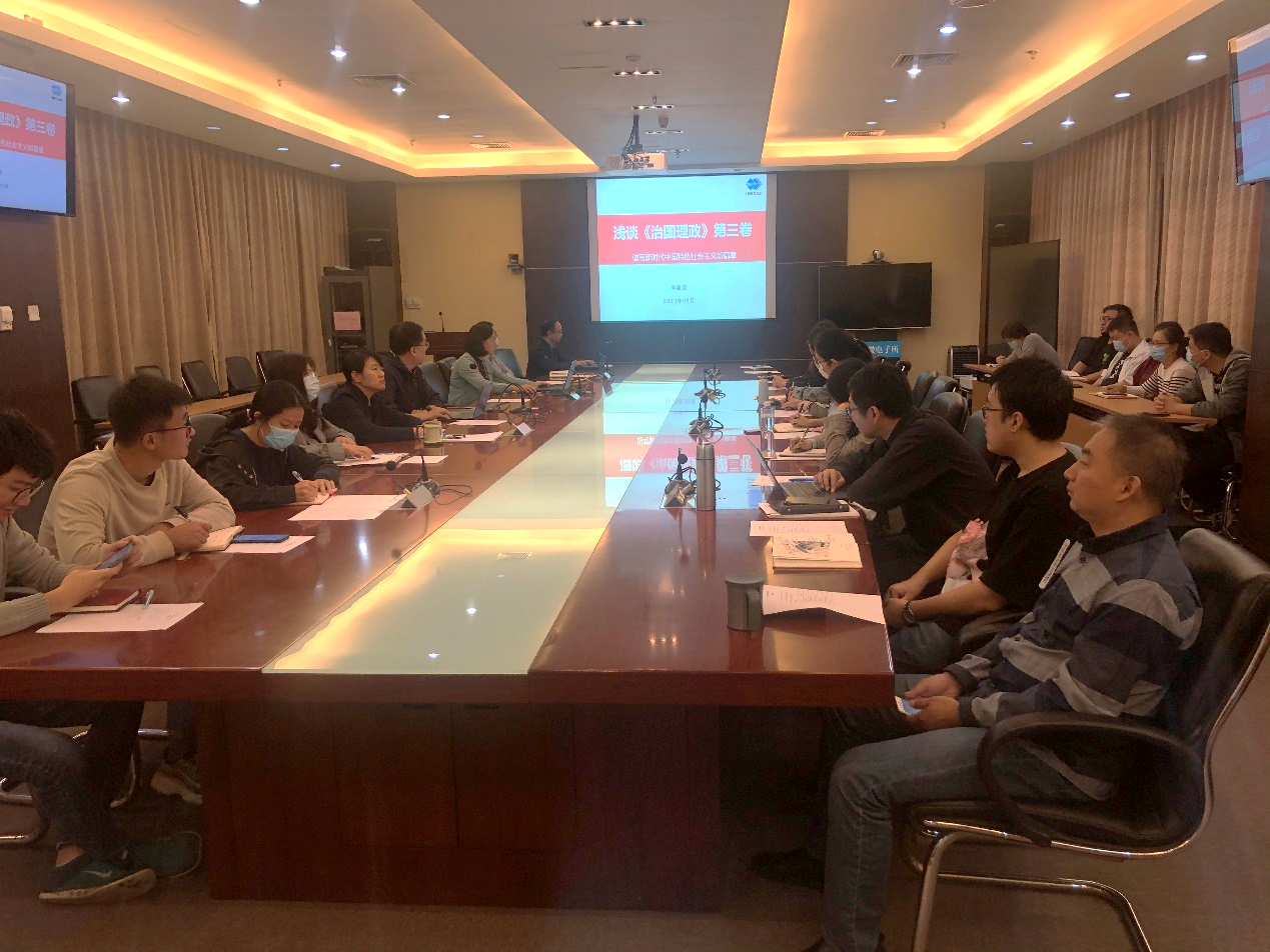 會議的第一項議程為支部書記講黨課。中心支部書記李超波同志以“淺談《治國理政》第三卷”為題,為全中心黨員同志上了一堂生動的政治理論課。李超波同志在自己閱讀、理解《習近平談治國理政》第三卷的基礎(chǔ)上,提綱挈領(lǐng)地向大家介紹了本書的主要內(nèi)容、主要思想,并著重介紹了第三卷與前面兩卷之間的聯(lián)系,告誡大家要將第三卷和第二卷、第一卷作為一個整體來學習,讀原著、學原理,以強烈的擔當精神抓好學習貫徹。