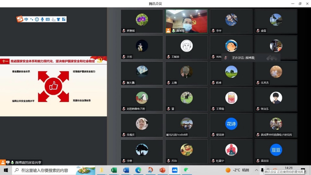 11月30日,光電技術(shù)研發(fā)中心黨支部組織召開“深入學習貫徹落實黨的二十大會議精神”全體黨員大會。所黨委委員/科技處李平處長、綜合辦金迪副處長出席會議,光電中心四名副主任、支委及全體黨員參加會議。會議由光電中心黨支部副書記、副主任吳曉斌主持。