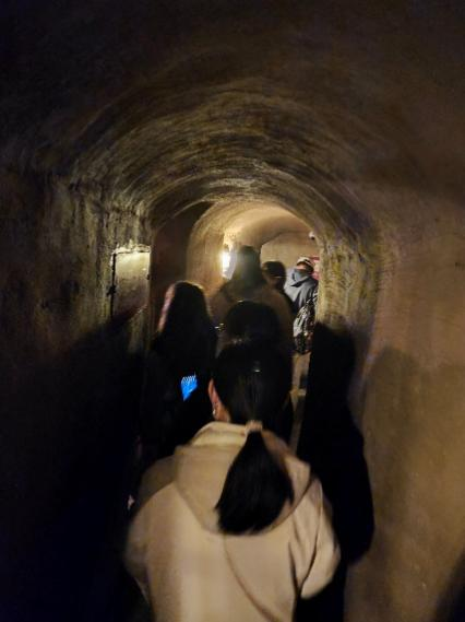 焦莊戶地道戰(zhàn)遺址紀念館位于北京市順義區(qū)龍灣屯鎮(zhèn),是北京市愛國主義教育基地、黨史教育基地,被譽為“人民第一堡壘”。在紀念館內(nèi),大家依次參觀了地道戰(zhàn)紀念館、地道遺址。通過大量珍貴的歷史文物、圖片資料和影像記錄,了解了冀東軍民在中國共產(chǎn)黨堅強領導下,巧妙利用地道與敵人開展頑強斗爭的英勇事跡,深刻感悟人民群眾在抗戰(zhàn)中展現(xiàn)出的無窮智慧和磅礴力量。隨后,大家實地探訪保存完好的抗戰(zhàn)地道遺址。在狹窄潮濕的地道中,大家彎腰前行,親身體驗抗戰(zhàn)時期軍民協(xié)作的智慧與艱辛,深切體會到革命先輩在艱苦環(huán)境中展現(xiàn)出的頑強斗志與創(chuàng)新精神。