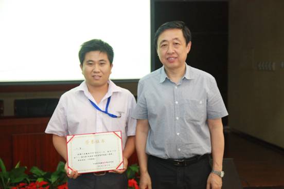 何巖同志為獲微電子所“我與十八大”征文活動(dòng)一等獎(jiǎng)選手頒獎(jiǎng)