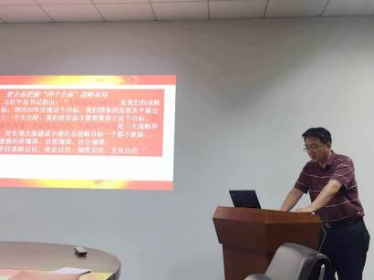 黨支部書記李俊鋒作了題為《為什么開展習總書記系列講話學習教育》的黨課報告。他指出,學習習總書記系列講話是全面建成小康社會決勝階段的重要保障,是實現(xiàn)國民經濟新一輪全面振興的思想基礎,是貫徹全面從嚴治黨的根本要求。學習教育基礎在學、關鍵在做,要堅持帶著問題學、針對問題改,區(qū)分層次、分類指導,抓在日常、嚴在經常等原則,突出特點、體現(xiàn)特色。全體黨員要培養(yǎng)全局眼光,深刻學習理解以習近平同志為總書記的黨中央治國理政新理念新思想新戰(zhàn)略;要強化規(guī)矩意識,嚴守黨章黨規(guī)黨紀,做政治上的明白人;要堅持問題導向,有針對性的深入開展習總書記系列講話學習教育;要發(fā)揚擔當精神,搶抓機遇,爭做忠誠干凈擔當的模范。