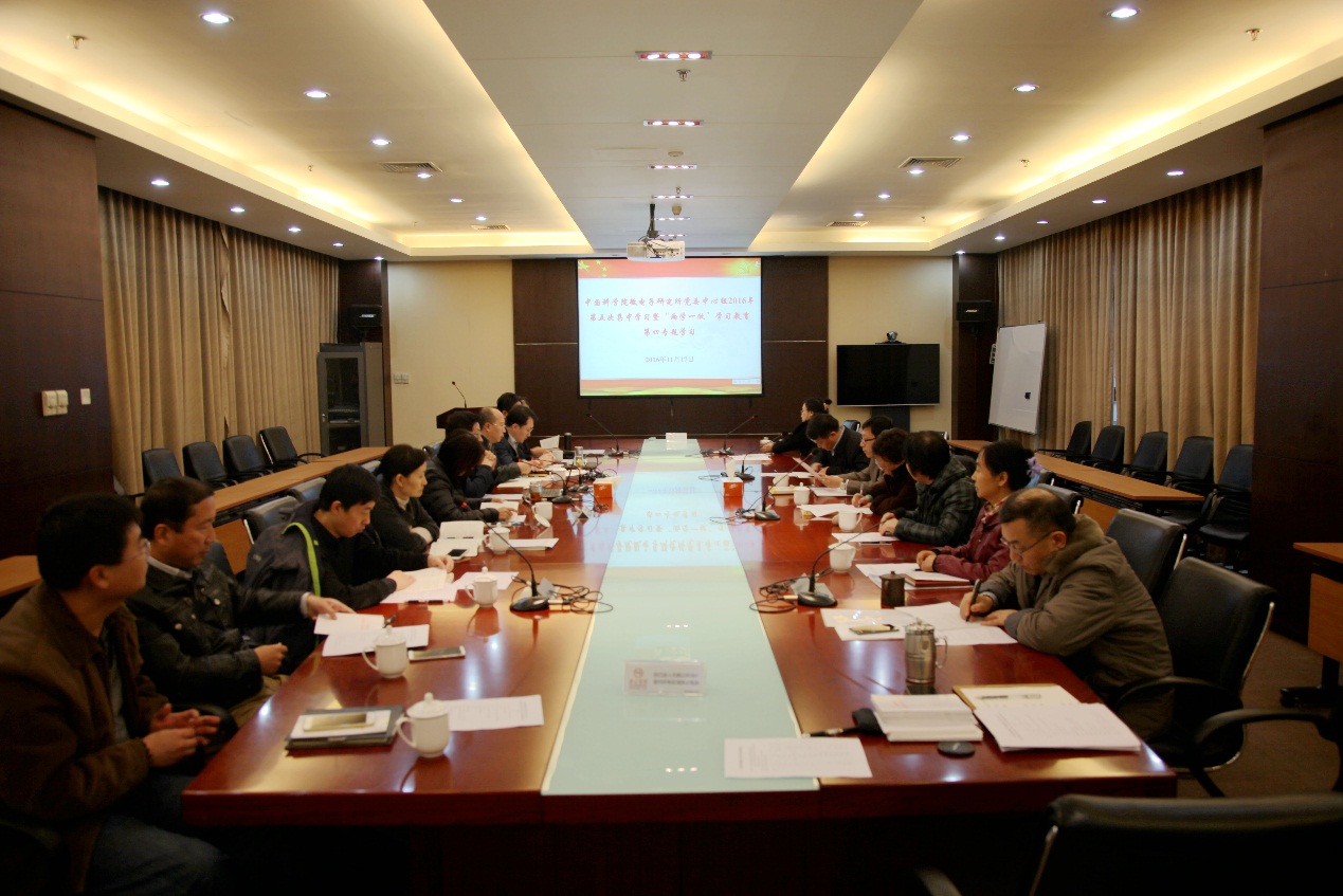11月17日,微電子所黨委中心組開展2016年第五次集中學習,集體學習黨的十八屆六中全會精神,圍繞“學宗旨,創(chuàng)新科技為民”開展“兩學一做”第四專題學習研討。黨委書記李培金主持學習,京區(qū)黨委副書記房自正、京區(qū)黨委組織員劉松林到會指導,所長葉甜春,副所長周也方,黨委副書記、紀委書記趙志剛及所黨委委員、所紀委委員共16人參加了學習。