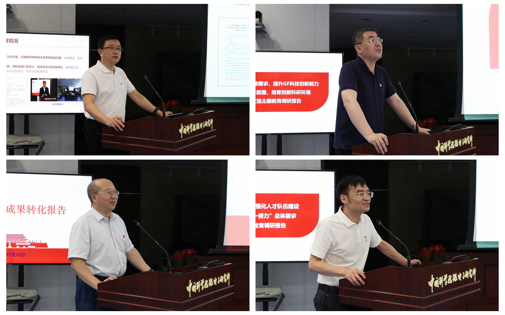 會上,戴博偉、曹立強(qiáng)、趙志剛、李泠分別圍繞“進(jìn)一步落實習(xí)近平總書記重要指示批示精神,聚焦集成電路領(lǐng)域主責(zé)主業(yè),提升研究所自主創(chuàng)新能力”、“圍繞國家重大戰(zhàn)略需求,聚焦主責(zé)主業(yè),推動重點實驗室申請和建設(shè)”、“高質(zhì)量做好風(fēng)險防控”、“EDA中心重組后科研布局調(diào)整、領(lǐng)軍人才引進(jìn)和培養(yǎng)”等調(diào)研主題逐一交流發(fā)言,分享了調(diào)研背景、調(diào)研設(shè)計、調(diào)研發(fā)現(xiàn)問題、整改措施等內(nèi)容。