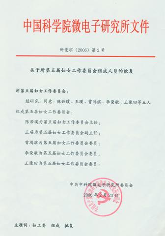 關(guān)于所第五屆婦女工作委員會組成人員的批復(fù)