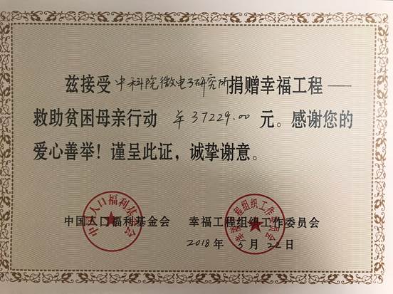 截止捐款活動結束,全所共籌善款37229元,及時如數(shù)上交中科院計生辦并在全所范圍進行公示。此次捐款活動凝聚了真情,充分體現(xiàn)了微電子所職工扶貧濟困、關注民生、關愛弱勢群體、樂于奉獻的高度社會責任感。
