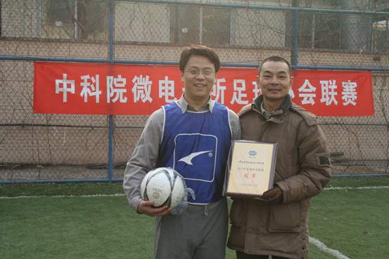 新上任的協(xié)會主席李俊峰在成立儀式上感慨的講到:足球運動在微電子所有著廣泛的群眾基礎(chǔ),一直開展的紅紅火火。從109廠到微電子中心再到微電子所,多年來取得了諸多榮譽,獲得中科院的足球賽冠軍和多次體育道德風尚獎,打造了一支作風頑強、技戰(zhàn)術(shù)水平高、不斷進取的優(yōu)秀球隊。為中科院足球隊先后輸送六名足球人才(在役四人)。塑造了團結(jié)協(xié)作、勇爭第一、極強的團隊精神。在院工會和兄弟單位的支持下,所里建起了足球場,院工會主席何巖、常務副主席張富寬曾親自來所為場地竣工、舉辦院內(nèi)聯(lián)賽剪彩。良好的場地為研究所、院京區(qū)足球運動的的開展提供了上佳條件。在今年中央國家機關(guān)第三屆田徑運動會上,由微電子所工會牽頭并參加的足球射門大賽獲得團體金牌,為我院爭得了榮譽。