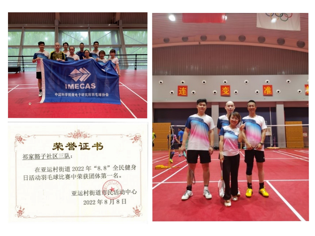 在微電子所工會、祁家豁子社區(qū)的大力支持下,微電子所羽協(xié)高度重視,精心組織,選派了2支隊(duì)伍代表祁家豁子社區(qū)參加了本次比賽。比賽前,祁家豁子社區(qū)工作人員給與了參賽隊(duì)員充分肯定,并宣講了疫情防控要求。比賽中,隊(duì)員們斗志昂揚(yáng),奮力拼搏、展開激烈角逐。最終,微電子所隊(duì)(祁家豁子代表隊(duì)1隊(duì))不負(fù)眾望取得了亞運(yùn)村街道2022年“8·8”全面健身日活動羽毛球比賽團(tuán)體第一名的優(yōu)異成績。