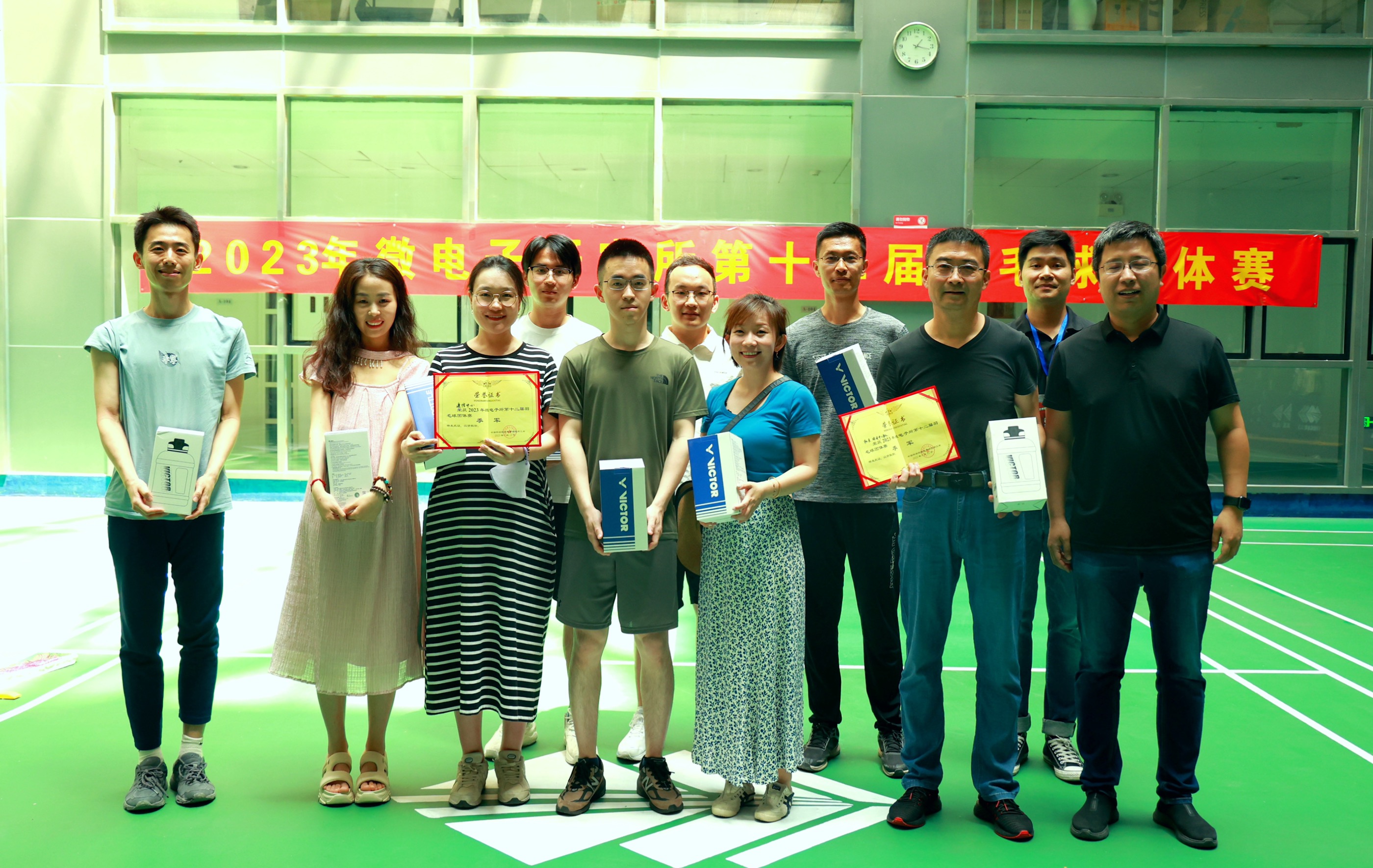 6月14日,由微電子所羽毛球協(xié)會(huì)舉辦的“2023年度所羽毛球團(tuán)體賽”決賽順利舉行。歷經(jīng)1個(gè)半小時(shí)的激烈鏖戰(zhàn)圓滿收官。所長(zhǎng)戴博偉、副所長(zhǎng)李泠、黨辦主任侯繼強(qiáng)出席了本次活動(dòng)并為本次比賽冠亞季軍頒發(fā)獎(jiǎng)杯及獲獎(jiǎng)證書。