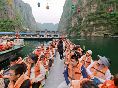 ????通過活動,增進了大家之間的感情,大家之間的配合度也越來越高。現場氣氛融洽,熱鬧非凡。為后續(xù)的科研活動奠定了堅實的基礎。午餐過后,大家首先進行了集體合影留念,之后結伴前往游覽。龍慶峽古稱“古城九曲”,被人們譽為北京的“小漓江”,是北京十六景之一。其水源于海坨山東麓,經玉渡山匯入古城水庫。進入景區(qū)不多遠看到一條黃綠相間的巨龍盤旋在千仞峭壁之上,很多人在這個位置拍照留念。大龍身體里就是騰龍電梯。大家乘坐騰龍電梯繼續(xù)前往碼頭乘坐游船游覽。龍慶峽峰巒峭立,山清水秀,既有南方的秀麗,又有北方的雄奇。乘船游覽結束后,大家三五成群游走在湖邊和山林中,各自徜徉在五月的和風中。大家盡享著工作之外的悠閑和歡愉。