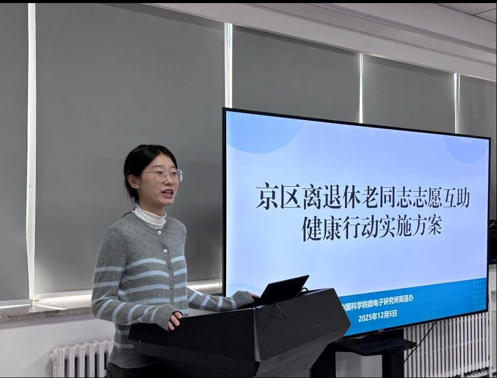 微電子所人事處離退辦張一祎介紹了“京區(qū)離退休老同志志愿互助健康行動(dòng)”的實(shí)施方案。該行動(dòng)旨在利用先進(jìn)的“中醫(yī)四診儀”檢測(cè)服務(wù),依托經(jīng)過(guò)培訓(xùn)的離退休志愿者隊(duì)伍,走進(jìn)京區(qū)各單位,為約1200名老同志提供便捷、專業(yè)的健康狀態(tài)篩查與評(píng)估服務(wù),探索“以老助老、科技支撐”的志愿健康互助新模式。