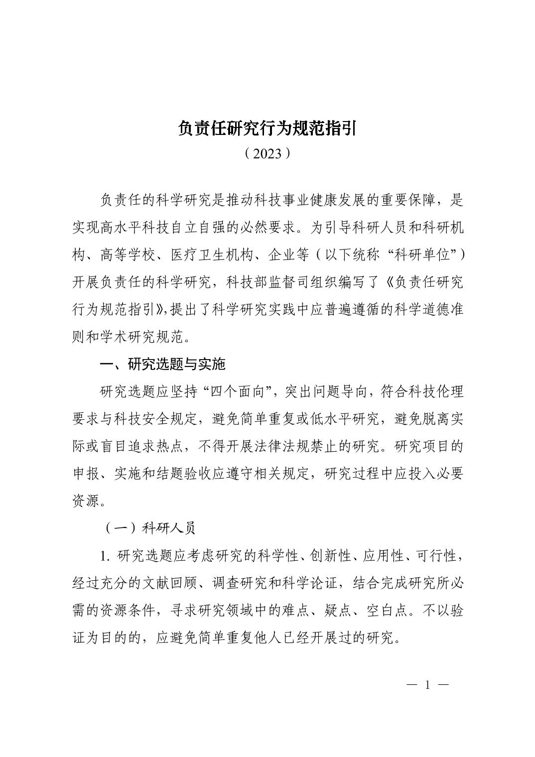負責任研究行為規(guī)范指引(2023)