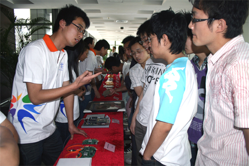 活動(dòng)伊始,我所幾十名科普志愿者向同學(xué)們介紹了微電子所的發(fā)展歷程、“芯片制造流程”、各室科研成果、EDA中心和我所2008年度最新科研進(jìn)展。同學(xué)們對(duì)展示內(nèi)容產(chǎn)生了濃厚的興趣,不時(shí)提出各種問(wèn)題,志愿者們一一作了耐心細(xì)致的解答。