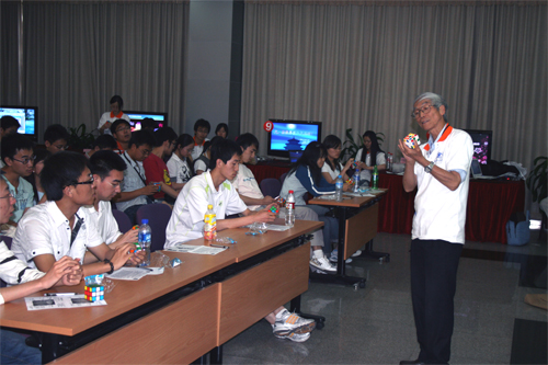 活動(dòng)中,陳寶欽研究員還從“微光刻與微納米加工技術(shù)”方面向同學(xué)們作了微電子發(fā)展的報(bào)告。在報(bào)告的互動(dòng)環(huán)節(jié)中,他以魔方復(fù)原的啟發(fā)向同學(xué)們闡釋了學(xué)習(xí)和科研的方法,并鼓勵(lì)同學(xué)們要勤學(xué)好問(wèn)、刻苦努力、發(fā)揚(yáng)“氧氣瓶”的奉獻(xiàn)精神,爭(zhēng)做科學(xué)志愿者,以所學(xué)知識(shí)報(bào)效祖國(guó)。