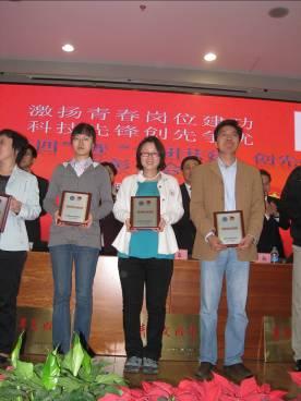 微電子所團(tuán)委書記武錦(右二)代表所團(tuán)委領(lǐng)獎