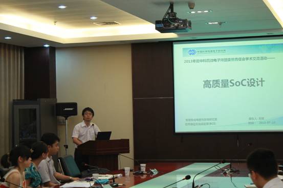 吳斌研究員長(zhǎng)期從事數(shù)字信號(hào)處理、通信信號(hào)處理、計(jì)算機(jī)網(wǎng)絡(luò)協(xié)議、高速嵌入式處理系統(tǒng)及SoC集成設(shè)計(jì)與實(shí)現(xiàn)等方面的研究,主持和參與了包括無線通信移動(dòng)通訊重大專項(xiàng)、中科院知識(shí)創(chuàng)新工程等多項(xiàng)國(guó)家級(jí)重大科研項(xiàng)目。報(bào)告中,他從“高質(zhì)量SoC的概念與評(píng)估準(zhǔn)則、高質(zhì)量SoC設(shè)計(jì)流程與設(shè)計(jì)規(guī)范、復(fù)雜SoC高層次抽象與多態(tài)建模、高質(zhì)量SoC模塊化體系架構(gòu)設(shè)計(jì)、基于腳本的SoC設(shè)計(jì)方法與流程、復(fù)雜SoC可測(cè)性設(shè)計(jì)與多層次集成驗(yàn)證”等6個(gè)方面向大家介紹了如何設(shè)計(jì)高質(zhì)量的SoC的內(nèi)容。他語言幽默,報(bào)告中還凝結(jié)了自己多年來在科研第一線的心得和體會(huì),現(xiàn)場(chǎng)笑聲和掌聲不斷。青年職工和學(xué)生紛紛表示受益匪淺,獲益良多,學(xué)習(xí)到了有效開展科研工作的寶貴經(jīng)驗(yàn)。