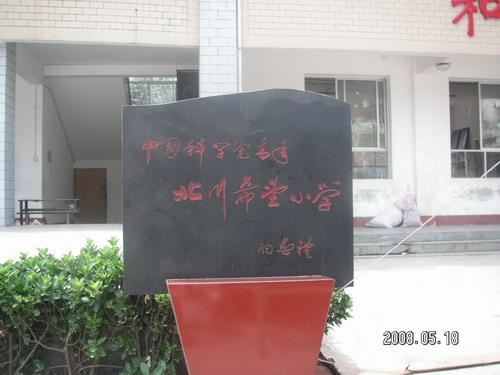 震后的北川希望小學(xué)新樓屹立,校碑不倒