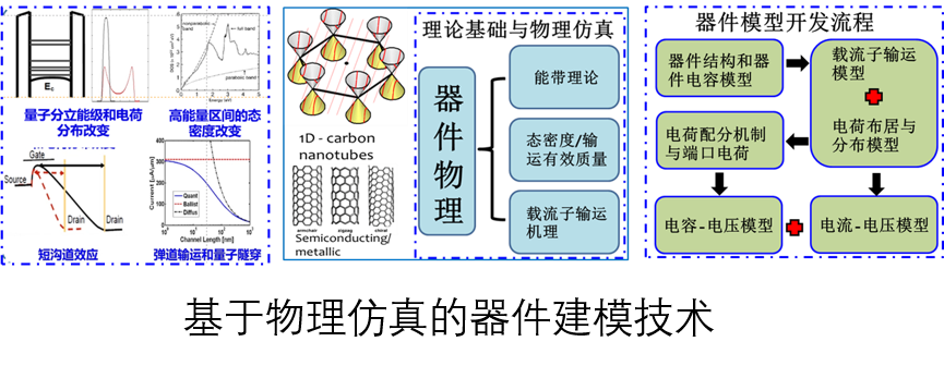 載流子輸運機理與器件物理仿真、物理仿真輔助器件建模、器件參數(shù)提取與驗證。科研成果:采用非平衡格林函數(shù)法開展器件物理仿真研究,形成點工具原型;開展物理仿真輔助器件模型研究,形成碳基場效應(yīng)晶體管器件模型原型以及配套模型提參技術(shù)方案。