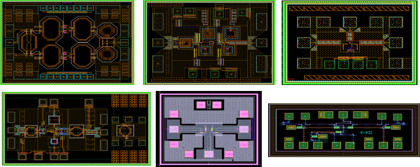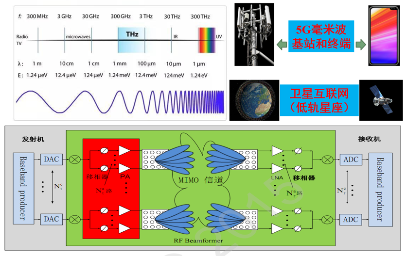 基于標(biāo)準(zhǔn)CMOS工藝、RF-SOI CMOS工藝以及SiGe BiCMOS等硅基工藝,開發(fā)完成多款寬帶射頻毫米波芯片,包括首款符合中國單載波超寬帶標(biāo)準(zhǔn)的6-9GHz超寬帶射頻收發(fā)芯片,該芯片支持500MHz帶寬,與清華大學(xué)合作完成芯片系統(tǒng)驗(yàn)證并開展產(chǎn)業(yè)化應(yīng)用;與華為海思合作開發(fā)完成60GHz CMOS毫米波射頻收發(fā)芯片,該芯片的相關(guān)核心IP授權(quán)給華為使用; 開發(fā)完成28GHz/39GHz 5G毫米波相控陣前端芯片,并與中國信息通信科技集團(tuán)合作完成5G毫米波小基站驗(yàn)證。同時(shí)將開發(fā)的芯片進(jìn)行IP化,具體包括功率放大器、低噪聲放大器、開關(guān)、數(shù)控移相器、數(shù)控衰減器、濾波器等。通過射頻器件IP核研究,化繁為簡,縮短大規(guī)模系統(tǒng)芯片設(shè)計(jì)周期,提高系統(tǒng)芯片可靠性,快速地進(jìn)行設(shè)計(jì)復(fù)用和創(chuàng)新迭代。