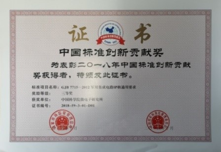 ★ 發(fā)布國內(nèi)首個(gè)、目前唯一的軍用IP核標(biāo)準(zhǔn),獲中國標(biāo)準(zhǔn)創(chuàng)新貢獻(xiàn)獎(jiǎng)三等獎(jiǎng);