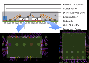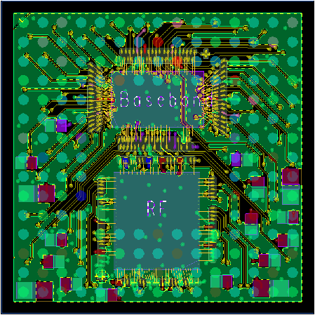 為863導(dǎo)向課題無線傳感網(wǎng)節(jié)點芯片提供SIP解決方案,系統(tǒng)包含:Baseband芯片,135pin,大小為3875um×2317um;RF芯片,108pin,大小為4060um×3590um,載波頻率2.4G;4顆0402貼片電容和13顆0201貼片電容。兩顆芯片為side by side放置,采用Wirebonding連接方式。整體封裝尺寸為13mm×13mm,176 balls。