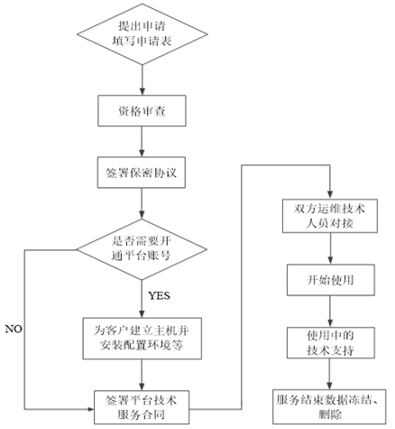 依據(jù)平臺的兩種服務(wù)模式,客戶可根據(jù)自身情況自行選擇申請,使用流程如下圖所示。
