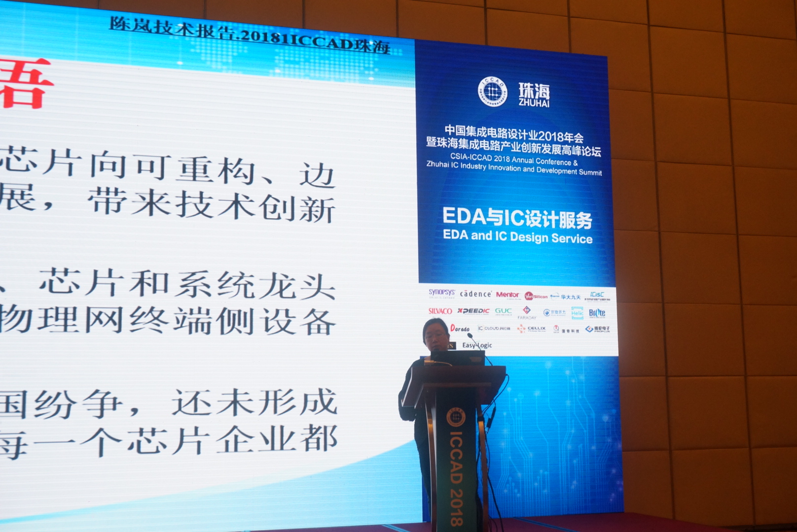 中國科學(xué)院EDA中心于2018年11月29日-30日參加了中國集成電路設(shè)計業(yè) 2018年會暨北京集成電路產(chǎn)業(yè)創(chuàng)新發(fā)展高峰論壇(ICCAD2018)。中科院EDA中心主任陳嵐研究員應(yīng)邀在專題論壇上作了題為題為《支持嵌入式智能的物聯(lián)網(wǎng)處理器平臺》的主題報告,陳嵐研究員分析了物聯(lián)網(wǎng)應(yīng)用需求特點,提出了端計算(terminal computing)概念,并提出基于新型非揮發(fā)存儲器件的新型處理器結(jié)構(gòu),期望能夠為物聯(lián)網(wǎng)應(yīng)用提供高效、低功耗的感知信息本地智能化處理解決方案。