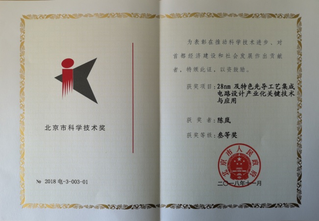 28nm及特色先導(dǎo)工藝集成電路設(shè)計(jì)產(chǎn)業(yè)化關(guān)鍵技術(shù)與應(yīng)用” 榮獲北京市科學(xué)技術(shù)三等獎(jiǎng)“