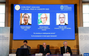 瑞典皇家科學(xué)院8日宣布,將2025年諾貝爾化學(xué)獎授予北川進、理查德·羅布森和奧馬爾·M·亞吉三名科學(xué)家...